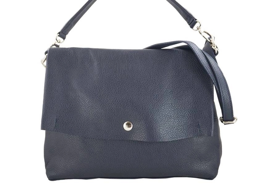 Wnętrze torebki: jednokomorowe wnętrze jest wykończone podszewką. Wewnątrz wyodrębniono zasuwaną kieszonkę oraz miejsce na telefon, portfel lub notes. Duża torebka klasyczna ze skóry naturalnej miękkiej jest zasuwana oraz dodatkowo zapinana na zatrzask, posiada krótszy pasek bez regulacji (długość 42cm, wysokość 18cm) oraz dodatkowy długi pasek z regulacją (maksymalna dł. 130cm, maksymalna wys. 65cm). Na zewnątrz, z tyłu torebki, znajduje się poręczna zasuwana kieszonka umożliwiająca szybki dostęp np. do kluczy lub biletów.