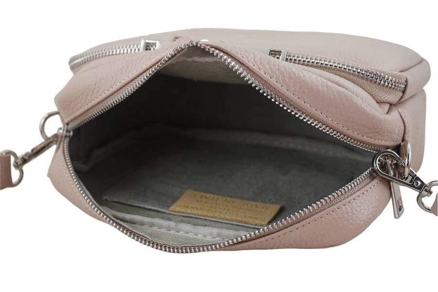 Torebka damska z ozdobnym paskiem różowa pudrowa została wykonana ze skóry naturalnej licowej. Klasyczny fason urozmaicony kolorowym paskiem, pojemną zasuwaną kieszenią z przodu oraz solidne wykonanie wyróżnia ten model listonoszki, która podkreśli stylizacje zarówno swobodne casual, jak i te na wyjątkowe okazje. Torebka damska z ozdobnym paskiem spełni oczekiwania naszych Klientek pod względem jakości produktu oraz uniwersalnego fasonu torebki, która sprawdzi się jako dodatek codziennej garderoby. Zapoznaj się z naszą najnowszą ofertą torebek skórzanych - listonoszek, klasycznych lub wygodnych plecaków. Oferujemy duży wybór produktów galanterii skórzanej Dla Niej i Dla Niego.