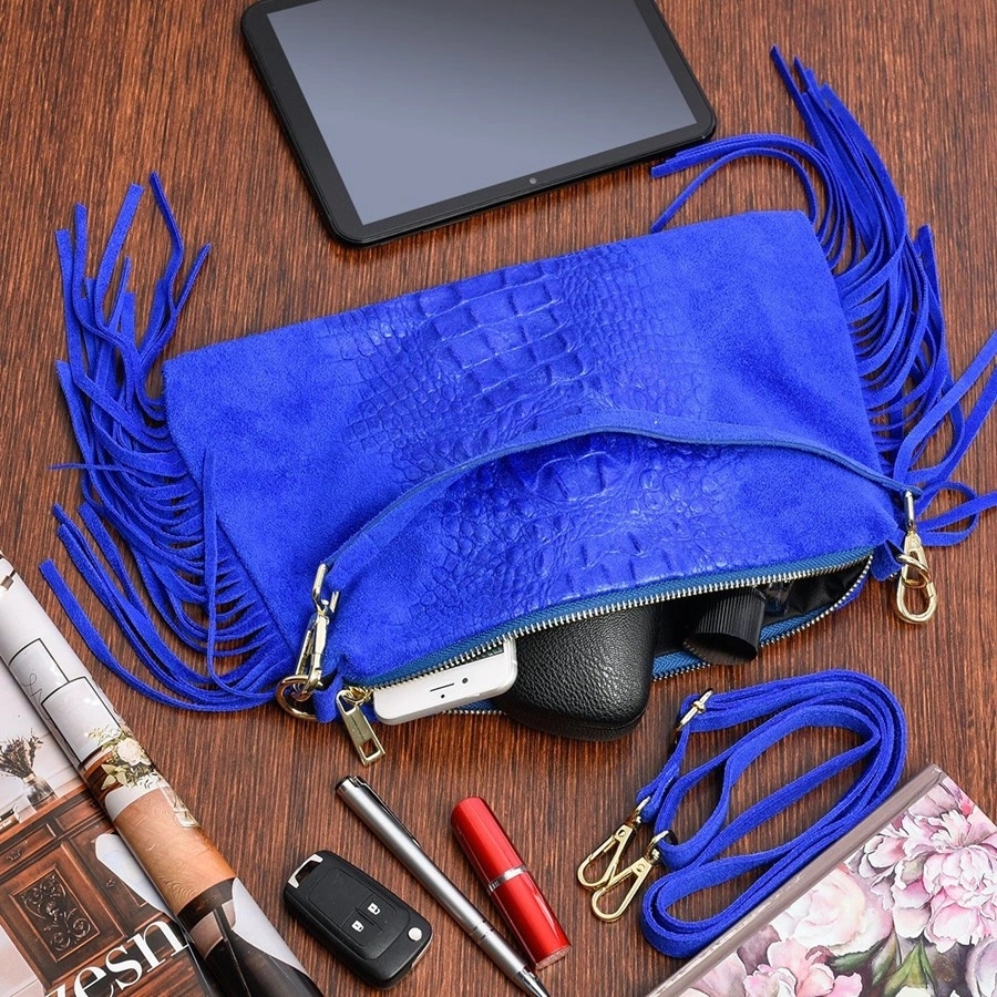 Listonoszka skórzana boho VERA PELLE Z24 chabrowa Opinie