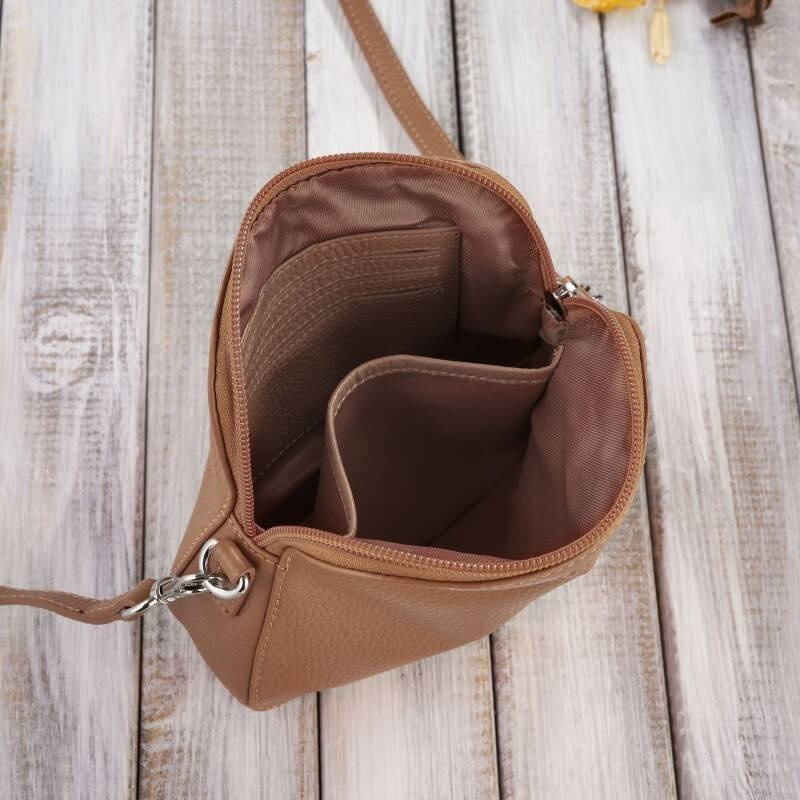 Torebka IN-61 posiada jedną, główną komorę zamykaną na suwak błyskawiczny. Wnętrze torebki zostało wykończone solidną podszewką. Na obu bokach torebki wewnątrz znajdują się dwie kieszenie. Jedna kieszeń wsuwka wykończona lamówką ze skóry naturalnej. Druga kieszeń wykonana została ze skóry naturalnej z 3 miejscami na karty kredytowe lub wizytówki. Całość posiada odczepiany skórzany pasek na ramię z regulacją. Nietuzinkowy odcień różu pozwoli stworzyć z torebką ciekawą i niebanalną stylizację! Uniwersalny kolor koniakowy torebki pozwoli dopasować ją do stylizacji zimowo-jesiennych, jak i również sprawdzi się przy stylizacjach wiosenno-letnich.