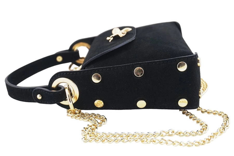 Zamszowe torebki wizytowe w kolorze czarnym zostały wykonane ze skóry naturalnej. Dostępne w najnowszej ofercie, w kategorii LISTONOSZKI, zamszowe torebki wizytowe ze złotymi nitami oraz modnym zapięciem to idealny dodatek wyjątkowej stylizacji. Nowoczesny design oraz wysokiej jakości skóra naturalna wyróżniają ten model torebki, która będzie idealnym uzupełnieniem ubioru na spotkanie z przyjaciółmi. Skorzystaj z oferty naszego sklepu - gwarantujemy wysoką jakość produktów, solidne wykonanie oraz duży wybór modeli torebek oraz portfeli. Chcesz być informowana o nowej kolekcji, uzupełnieniu magazynowym lub aktualnych promocjach? Zapisz się do naszego newslettera - wraz z informacją o najnowszej kolekcji otrzymasz rabat -15% na zakupy.