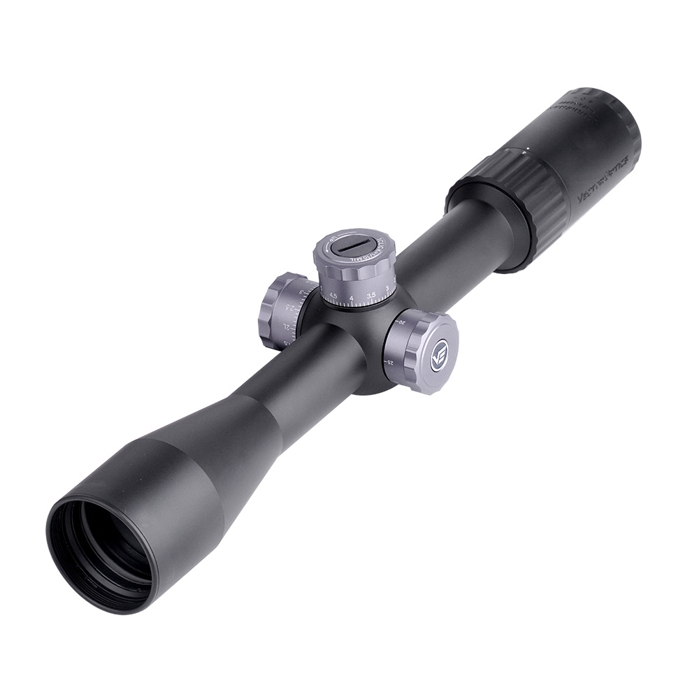 Luneta z siatką celowniczą siatkę celowniczą VPA-MF na pierwszym planie (FFP). Wyposażona w wieżyczki regulacyjne z blokadą ustawień.