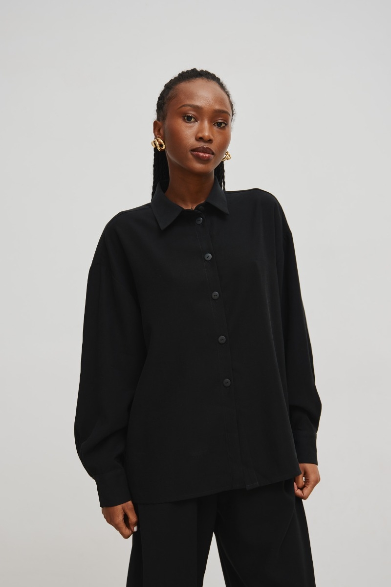 Koszula OBSESSION wykonana jest wiskozy, która jest niezwykle przyjemna w dotyku. Jej przepiękny czarny kolor nadaje elegancji i uniwersalności, dzięki czemu pasuje do wielu różnych stylizacji. Ma prosta klasyczną formę, która podkreśla kobiecą sylwetkę. Długie rękawy koszuli zakończone są delikatnymi mankietami, co dodaje subtelności i finezji. Zapinana na guziki pozwala na regulację dopasowania do indywidualnych preferencji. Klasyczny kołnierz dodaje koszuli formalności i klasy, idealnie pasuje do różnych okazji. Ta koszula to prawdziwy must-have w szafie każdej kobiety. Można ją nosić zarówno do pracy, jak i na spotkania czy wieczorne wyjścia. Doskonale komponuje się zarówno z eleganckimi spodniami i ołówkową spódnicą, jak i z jeansami czy z szerokimi luźnymi spodniami , nadając stylizacji niezobowiązującego charakteru. W połączeniu z czarnymi spodniami i szpilkami stworzy efektowny outfit na spotkanie biznesowe. Natomiast zestawiona z jeansową kurtką i trampkami koszula stworzy casualową, ale stylową stylizację na codzienny spacer po mieście. Tworzy komplet ze spodniami PASSION w tym samym kolrze. Skład : 97% Wiskoza, 3% Poliester ZALECANA PIELĘGNACJA :