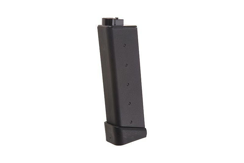 Wykonany z wytrzymałego tworzywa sztucznego magazynek typu low-cap mieszczący 30 kulek. Magazynek przeznaczony jest do repliki ARP9 firmy G&G.