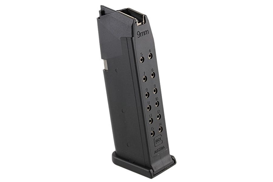 Magazynek o pojemności 15 nabojów w kalibrze 9mm do pistoletu Glock 19.