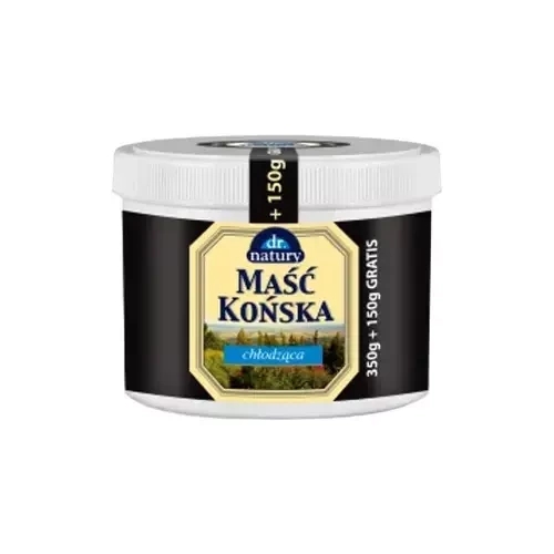 Maść końska chłodząca polecana jest do pielęgnacji skóry całego ciała. Zawiera unikalną kompozycję ekstraktów. Zapewnia efekt chłodzący i działa energetyzująco. Pomaga łagodzić napięcie i nadwerężenie mięśni, a także zmniejsza uczucie ciężkich nóg.