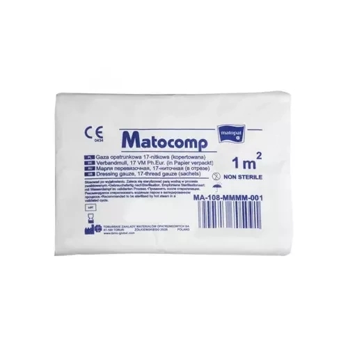 Wyrób medyczny Matocomp gaza opatrunkowa bawełniana niejałowa 17-nitkowa przeznaczony jest do stosowania przy zabiegach higieniczno-kosmetycznych. Gaza wykonana z bawełny bielonej nadtlenkiem wodoru. Jest gładka, chłonna i przepuszczająca powietrze.
