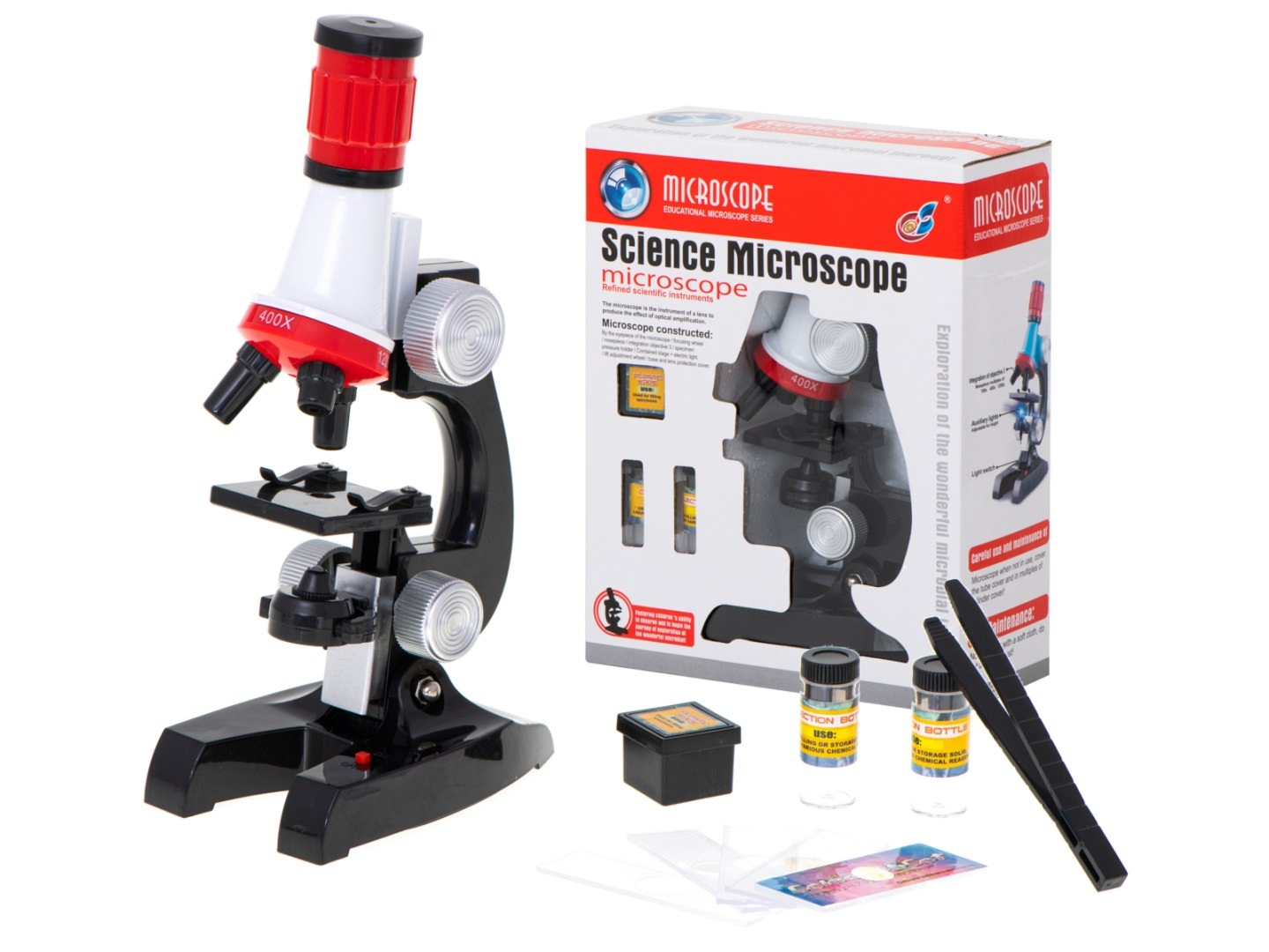 Mikroskop działa na 2 baterie AA (brak w zestawie).