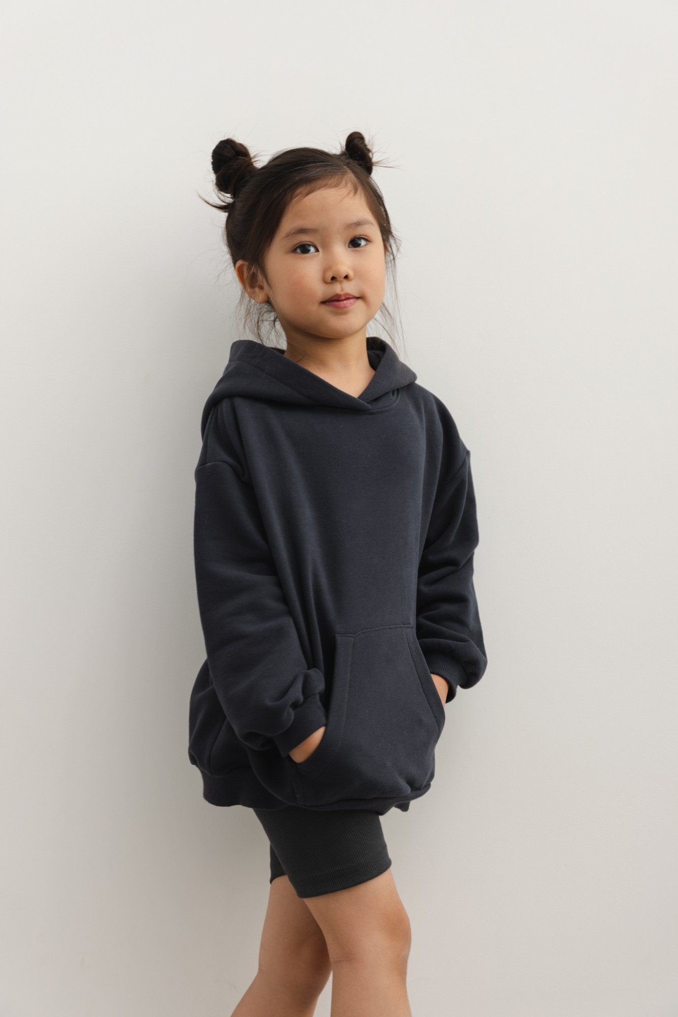 Bluza z dzianiny dresowej w kolorze grafitowym. Model z obszernym kapturem oraz kieszonką na przodzie. Długi rękaw z obniżoną linią ramion. Dół bluzy oraz rękawy zakończone ściągaczem . Oversizowy fason zapewni dziecku wygodę , nie będzie krępował ruchów. Modelka ma 118 cm wzrostu i prezentuje rozmiar (116-122) Skład: 90% Bawełna, 10% Poliester PRODUKT POLSKI - Marsala Collection ZALECANA PIELĘGNACJA: