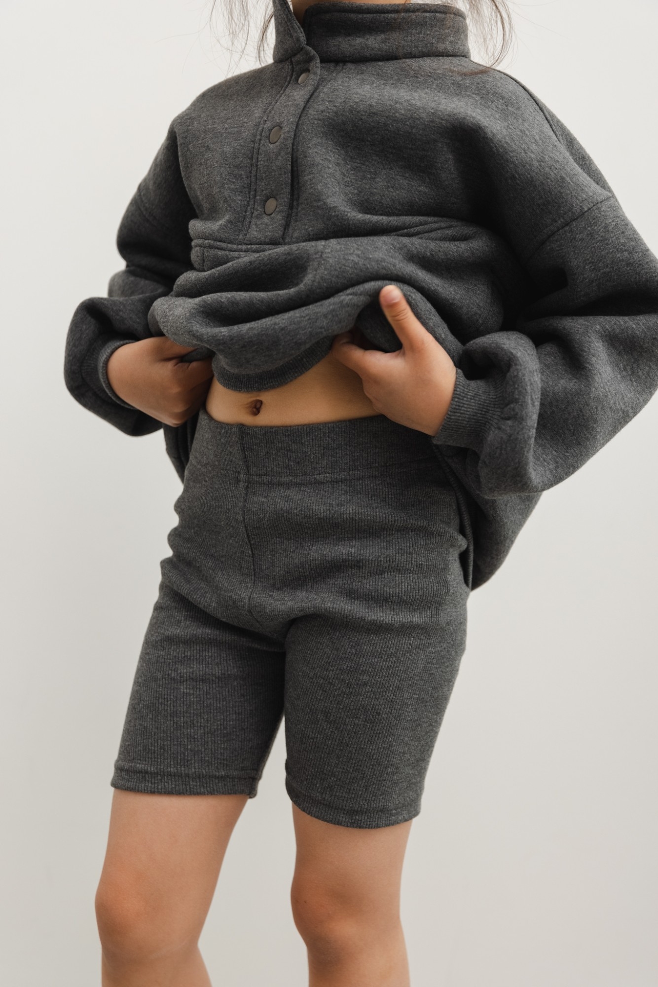 Krótkie leginsy wykonane z elastycznej, prążkowanej dzianiny w kolorze grafitowym. Model z wysokim stanem wykończonym gumą, idealnie dopasowuje się do figury. Inspirowany sportowymi getrami, od kilku sezonów niezmiennie pojawia się w wiosenno-letnich kolekcjach mody damskiej oraz dziecięcej . Daje możliwość stworzenia wielu odmiennych stylizacji. Połączysz je z obszernym t-shirtem, czy bluzą - wersja street. Ich niezaprzeczalne atuty to uniwersalne zastosowanie i wygoda użytkowania. Tworzą komplet z bluzą NIXON MINI w tym samym kolorze . Modelka ma 118 cm wzrostu i prezentuje rozmiar 116-122. Skład: 95% Bawełna, 5% Elastan PRODUKT POLSKI - MARSALA COLLECTION ZALECANA PIELĘGNACJA: