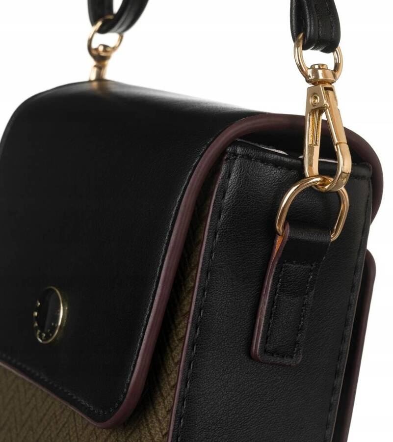 Mała torebka na długim, odpinanym pasku ze skóry ekologicznej. Na rewersie posiada kieszonkę zapinaną klapką na zatrzask magnetyczny. Wyposażona w 6 miejsc na karty.