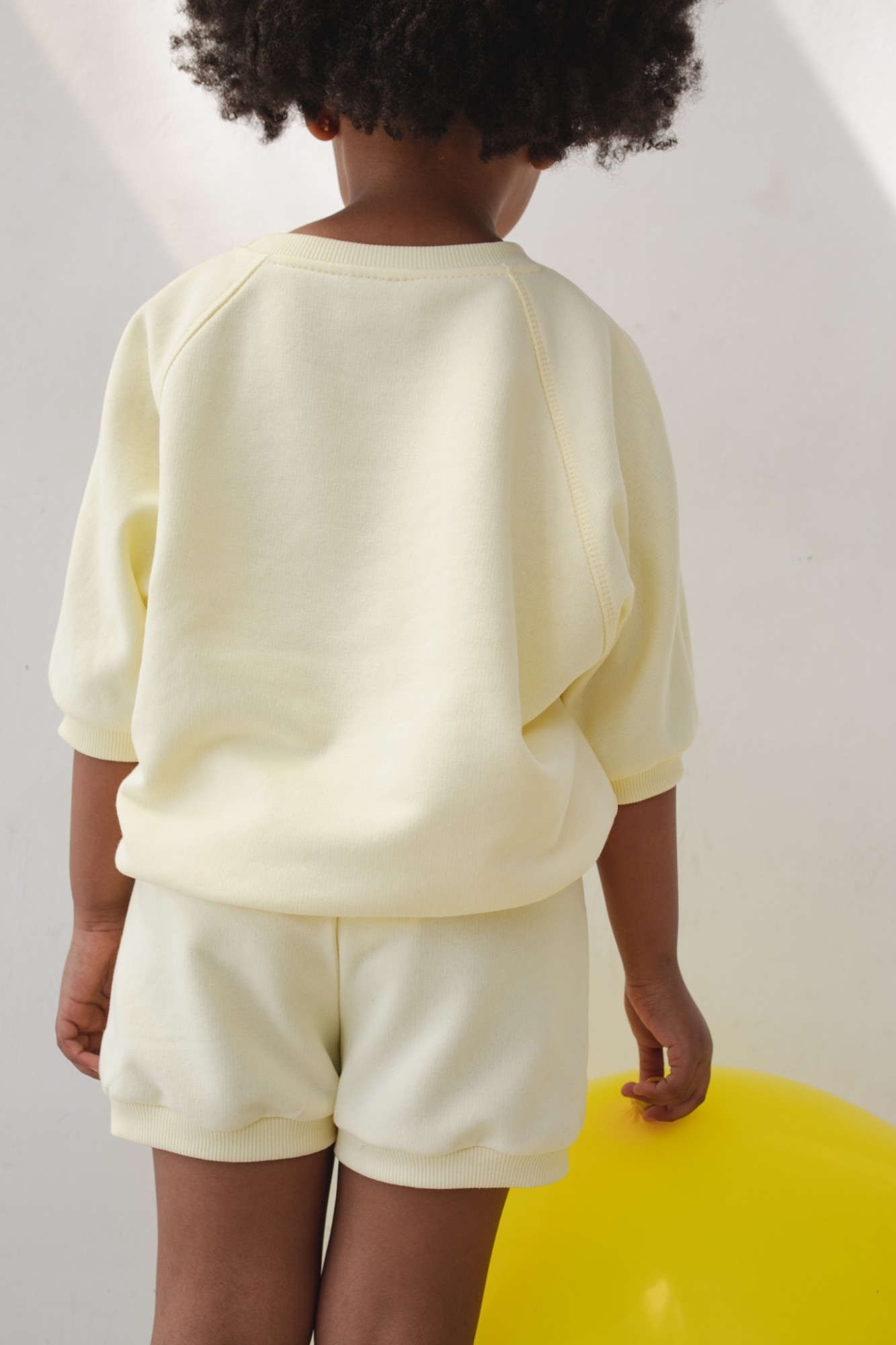 Spodenki w przygaszonym odcieniu żółtego. Wykonane z nieocieplonej, bawełnianej dzianiny. W pasie znajduje się guma oraz dodatkowe wiązanie, które umożliwi dopasowanie się do ciała. Dół spodenek wykończony ściągaczem w jednolitym kolorze. Przód został urozmaicony dwoma kieszonkami oraz minimalistycznym haftem - lisek. Tył zupełnie gładki. Delikatna, elastyczna dzianina pozwoli poczuć się komfortowo i stylowo w nadchodzącym sezonie. Tworzy komplet z bluzą MINGO oraz BASKET Modelka ma 110 cm wzrostu prezentuje rozmiar (104-110) Skład: 90 % Bawełna 10% Poliester PRODUKT POLSKI - Marsala Collection ZALECANA PIELĘGNACJA: