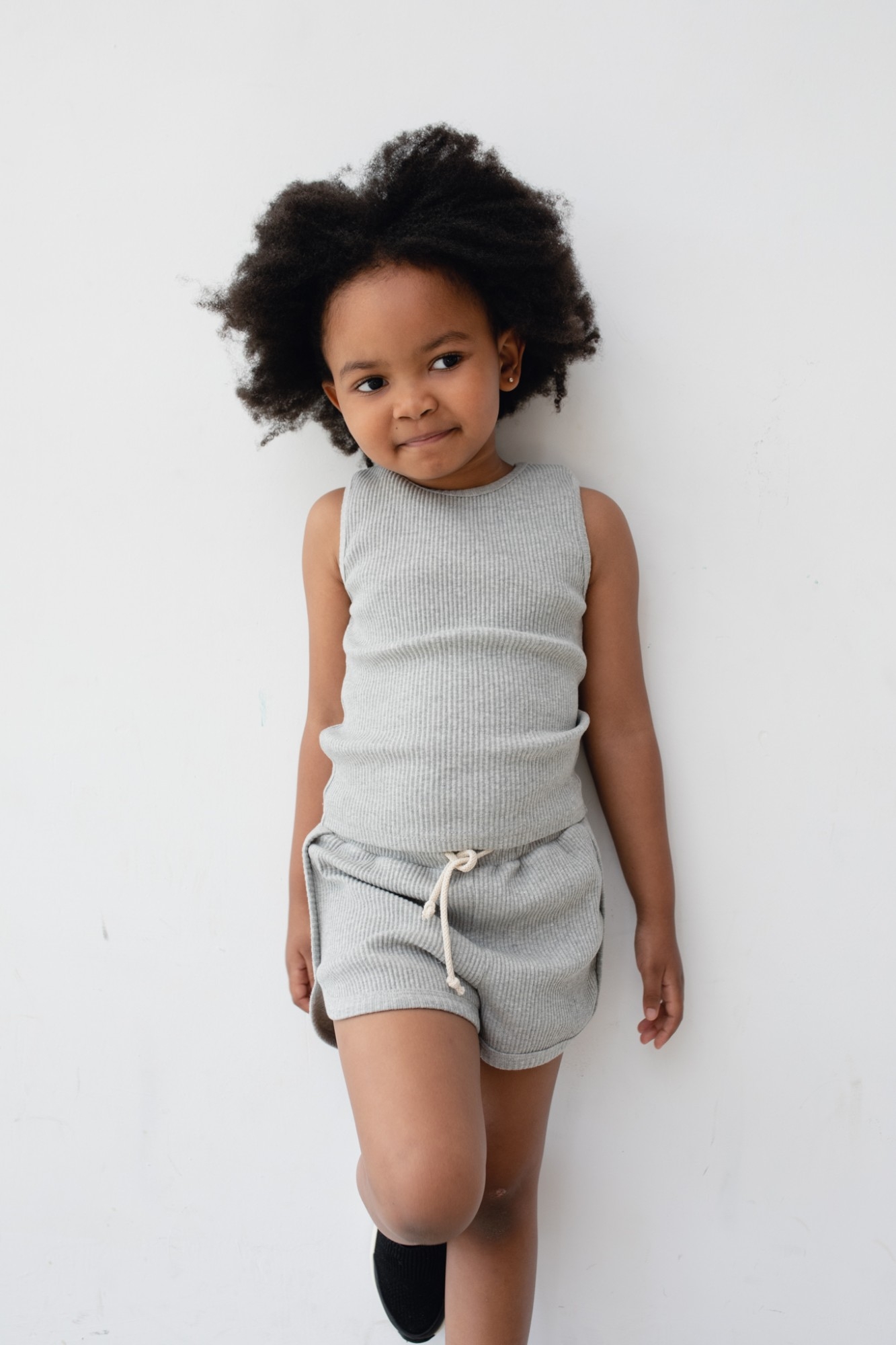 Spodenki z delikatnego prążkowanego materiały w kolorze szarym . Model wyposażony został w gumę oraz dodatkowe wiązanie. Delikatnie zaokrąglone nogawki. Nie posiada kieszonek. Tył zupełnie gładki. Stanowi bazę do stworzenia wielu stylizacji. Tworzy komplet z topem JUMPY Dostępna w kilku kolorach! Modelka ma 110 cm wzrostu prezentuje rozmiar (116-122) Skład: 95% Bawełna, 5% Elastan PRODUKT POLSKI - Marsala Collection ZALECANA PIELĘGNACJA: