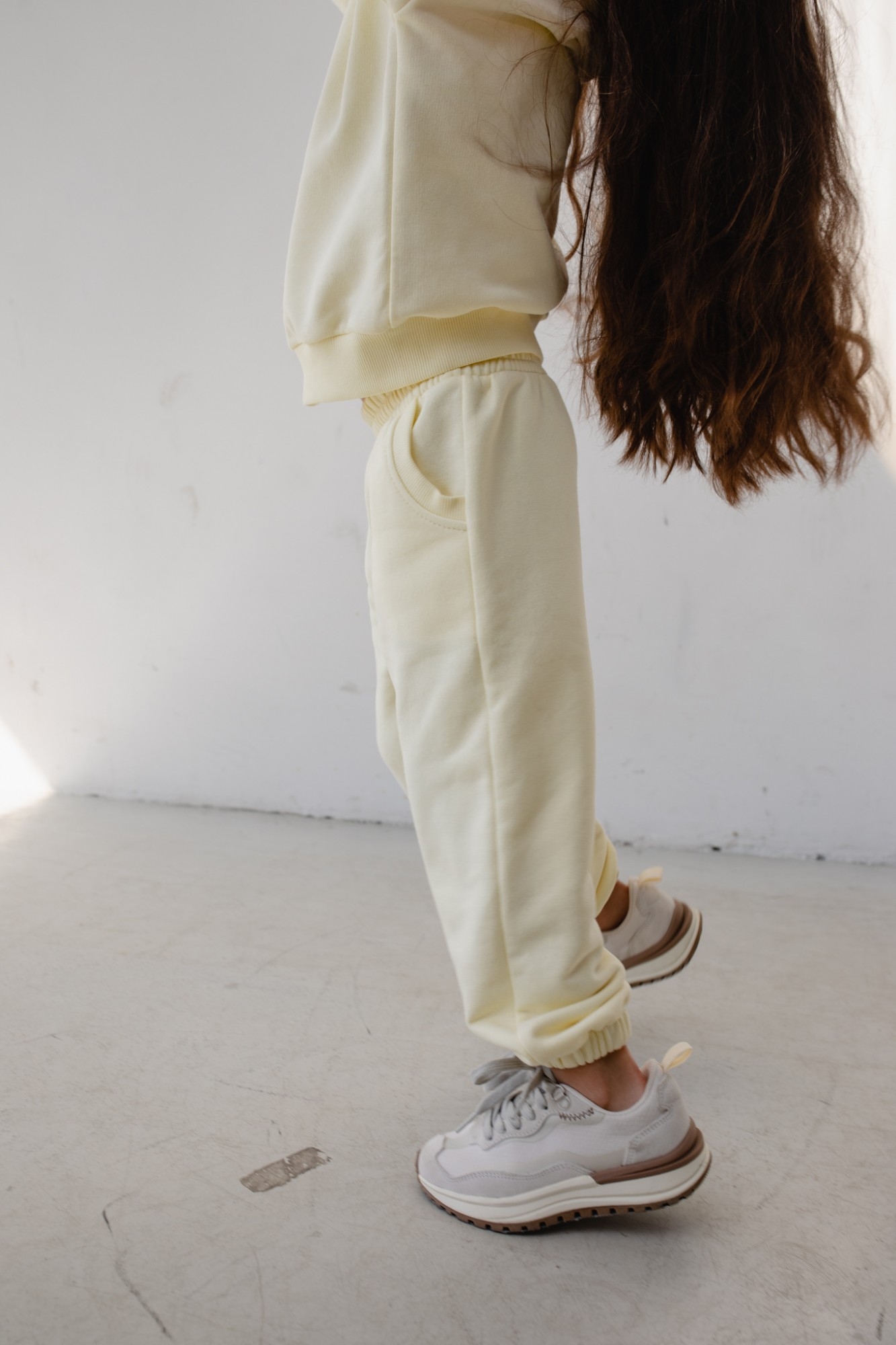 Joggery wykonane z dzianiny dresowej w przygaszonym odcieniu żółtego. Nie posiadają ocieplenia. Spodnie o luźnym kroju, z wysokim stanem oraz charakterystycznym wykończeniem nogawek - wszyta guma. W pasie również znajduje się guma, która umożliwi dopasowanie się do ciała - gwarantuje maksymalny komfort podczas noszenia. Z przodu zostały umieszczone dwie kieszonki. Tył zupełnie gładki. Jeden z modeli, które pozwalają na tworzenie wygodnych i bardzo modnych w ostatnich sezonach stylówek. Dostępne w kilku kolorach! Modelka ma 110 cm wzrostu prezentuje rozmiar (116-122) Skład: 90% Bawełna , 10% Poliester PRODUKT POLSKI - Marsala Collection ZALECANA PIELĘGNACJA: