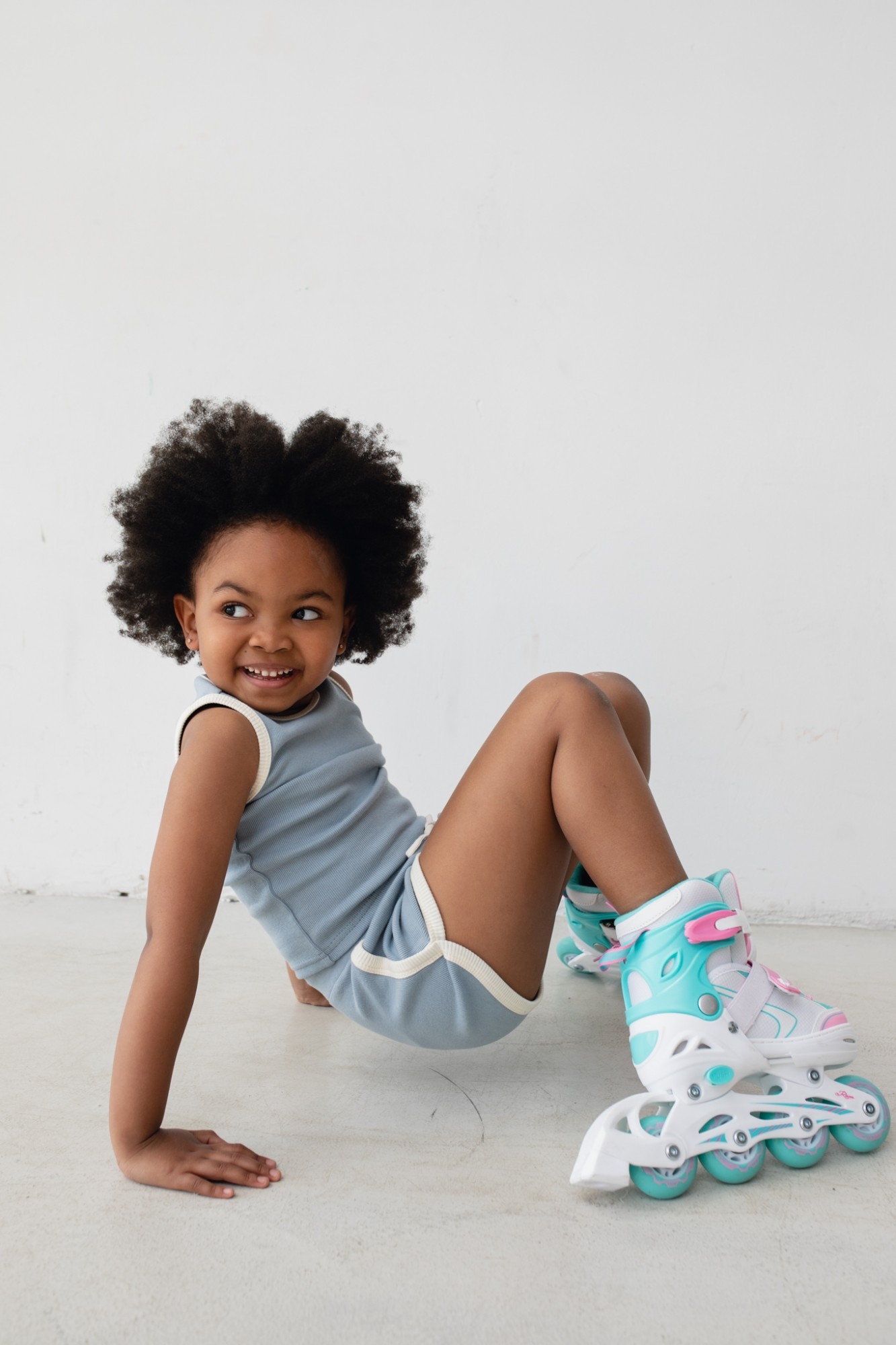 Top z prążkowanej dzianiny w kolorze błękitnym Model posiada półokrągły dekolt obszyty jasnobeżowym ściągaczem, który również został użyty przy wykończeniu rękawów. Tył jak i przód jest zupełnie gładki. Bardzo elastyczna tkanina. Stwórz idealną, letnią stylizację. Tworzy komplet ze spodenkami DALTON Modelka ma 110 cm wzrostu prezentuje rozmiar (116-122) zalecamy wybrać większy rozmiar Skład: 95% Bawełna , 5% Elastan PRODUKT POLSKI - Marsala Collection ZALECANA PIELĘGNACJA: