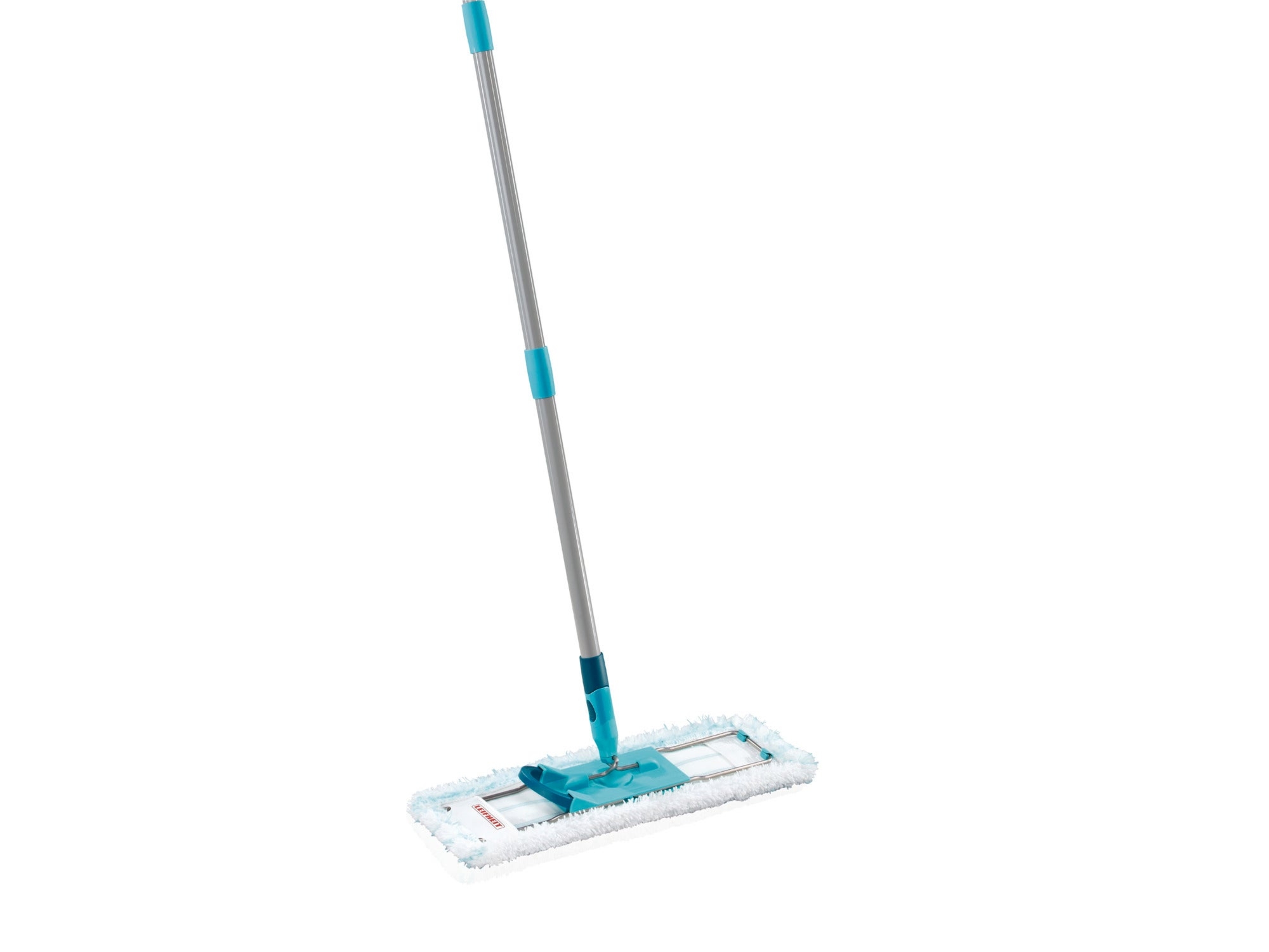 Koniec z bólem pleców podczas sprzątania i nieestetycznymi smugami na podłodze. Dzięki specjalnej nakładce wykonanej z dwóch rodzajów włókien mop Profi XL z nakładką micro duo marki Leifheit usuwa do 99% wirusów i bakterii* oraz umożliwia wygodną obsługę stopą. Tak wygląda idealny mop do dużych powierzchni, np. w kuchni lub pokojach. Nakładka wykonana z dwóch rodzajów włókien zawiera sprawdzoną mikrofibrę Duo marki Leifheit, która doskonale nadaje się do mycia wszystkich typów podłóg. Cieniutkie, trochę dłuższe włosie z łatwością usuwa nawet uporczywy brud z najmniejszych zagłębień. Nakładkę można ją prać w pralce w temp. 60°C do 400 razy bez utraty właściwości czyszczących. Duża szerokość nakładki do mopa Profi – 42 cm – pozwala zaoszczędzić wysiłku i wiele cennego czasu. Genialny przegub obrotowy 360° umożliwia skuteczne mycie zygzakiem oraz wokół nóg stołów i szaf. Drążek umożliwia pracę pod dowolnym kątem, a tym samym umycie także trudno dostępnych miejsc pod szafami i łóżkami. Mopa można używać w wygodnej pozycji stojącej: wystarczy zdjąć nakładkę, naciskając stopą na zatrzask, wycisnąć ją w oddzielnie dostępnym wiadrze z wyciskaczem do mopa Profi XL marki Leifheit, założyć ją ponownie i gotowe.