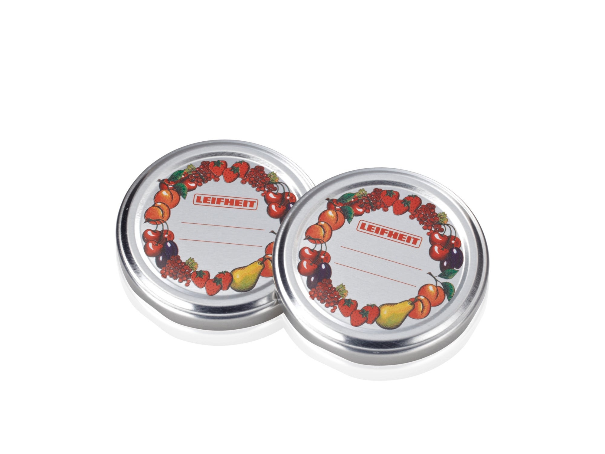 Nakrętki na słoiki marki Leifheit to gwarancja doskonałej szczelności i dodatkowa ozdoba naszych przetworów. Pasują do słoików marki Leifheit o pojemności 235 ml i wszystkich innych słoików o średnicy 8,2 cm. Wykonano je z wysokiej jakości metalu. Górna część nakrętek została ozdobiona kolorowym wzorem z owoców. Znajduje się tam również miejsce na opis zawartości słoika i/lub datę wykonania. Dzięki temu wszystkie przetwory będą zawsze pod kontrolą.