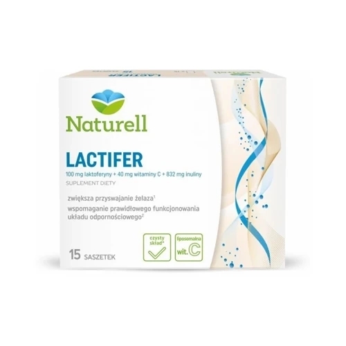 Naturell Lactifer to suplement diety w postaci kapsułek. Preparat uzupełnia codzienną dietę w laktoferynę, inulinę i witaminę C. Stosowanie produktu wspomaga m.in. prawidłowe funkcjonowanie układu odpornościowego i zwiększa przyswajanie żelaza.