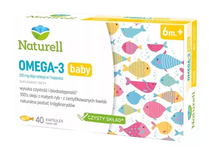 Naturell Omega-3 Baby to suplement diety przeznaczony dla dzieci powyżej 6. miesiąca życia. Pomaga uzupełnić codzienną dietę w cenne wielonienasycone kwasy tłuszczowe Omega-3 – kwas dokozaheksaenowy (DHA) oraz kwas eikozapentaenowy (EPA).