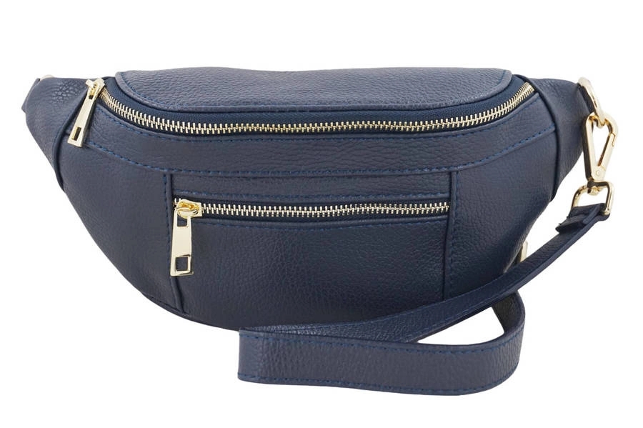 Damska torebka nerka skórzana z kieszenią granatowa została wykonana ze skóry naturalnej licowej. W kolekcji galanterii skórzanej oferujemy modne oraz klasyczne dodatki garderoby, które idealnie komponują się ze swobodnymi kreacjami stylu miejskiego. Praktyczna i wygodna damska torebka nerka skórzana z kieszenią to niezastąpiony dodatek codziennej garderoby. Idealna na spacer, spotkanie, zakupy, czy jazdę na rowerze lub rolkach. Nie krępująca ruchów. Regulowany pasek umożliwia noszenie torebki nerki wygodnie w pasie lub przewieszonej przez ramię. Wyjątkowe i gustowne torebki skórzane - listonoszki, nerki, klasyczne oraz worki dostępne w naszym sklepie wyróżniają się modnym fasonem, subtelnymi ozdobami oraz solidnym wykonaniem. Dostępna w najnowszej kolekcji damska torebka nerka skórzana z kieszenią uzupełni swobodny miejski outfit, podkreśli styl i charakter Twoich kreacji.