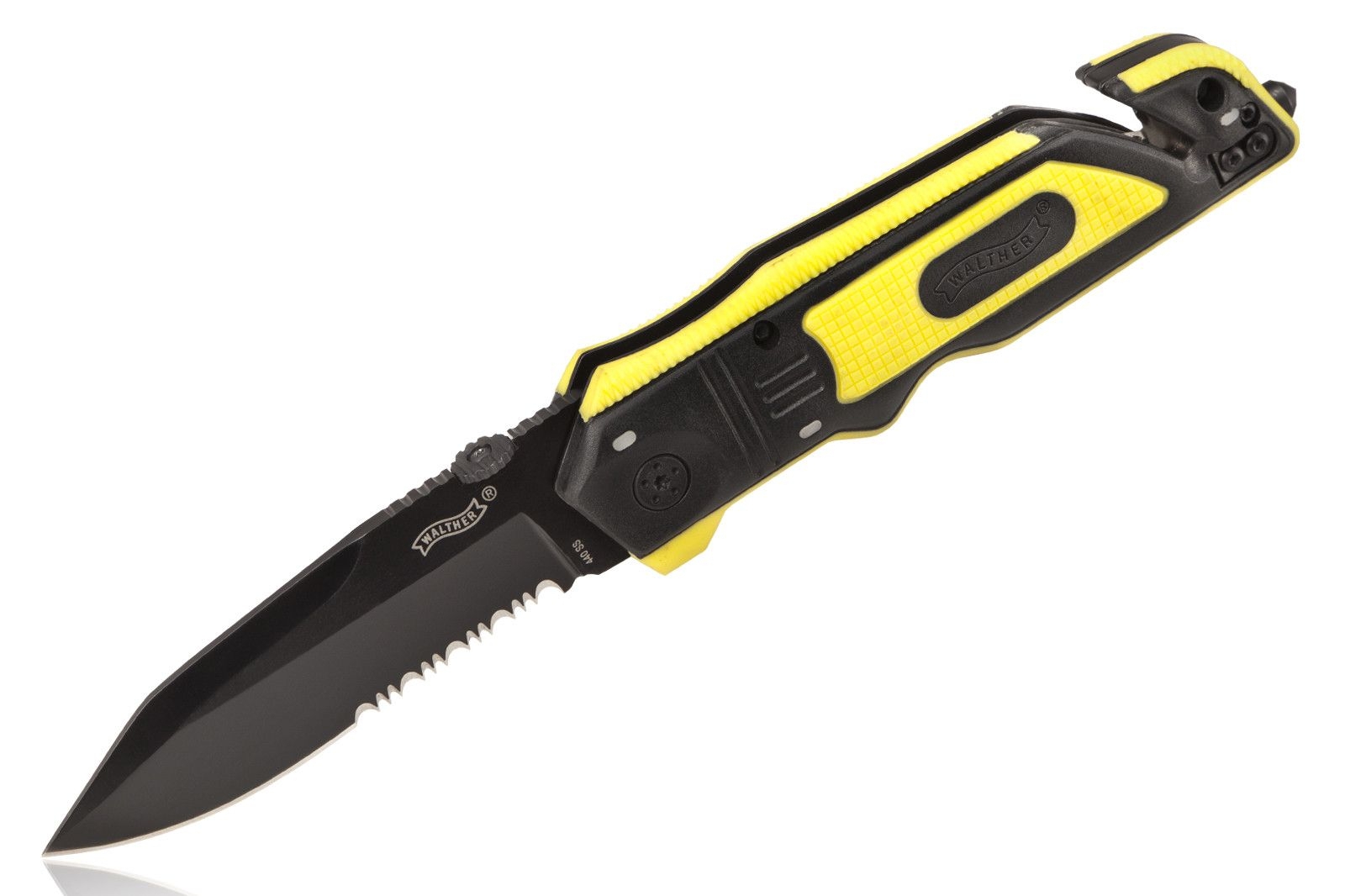 Walther ERC Rescue to zaawansowany nóż ratunkowy ze zbijakiem do szyb, ostrzem do cięcia pasów oraz odblaskowymi wstawkami pozwalającymi na szybkie znalezienie noża w ciemności.