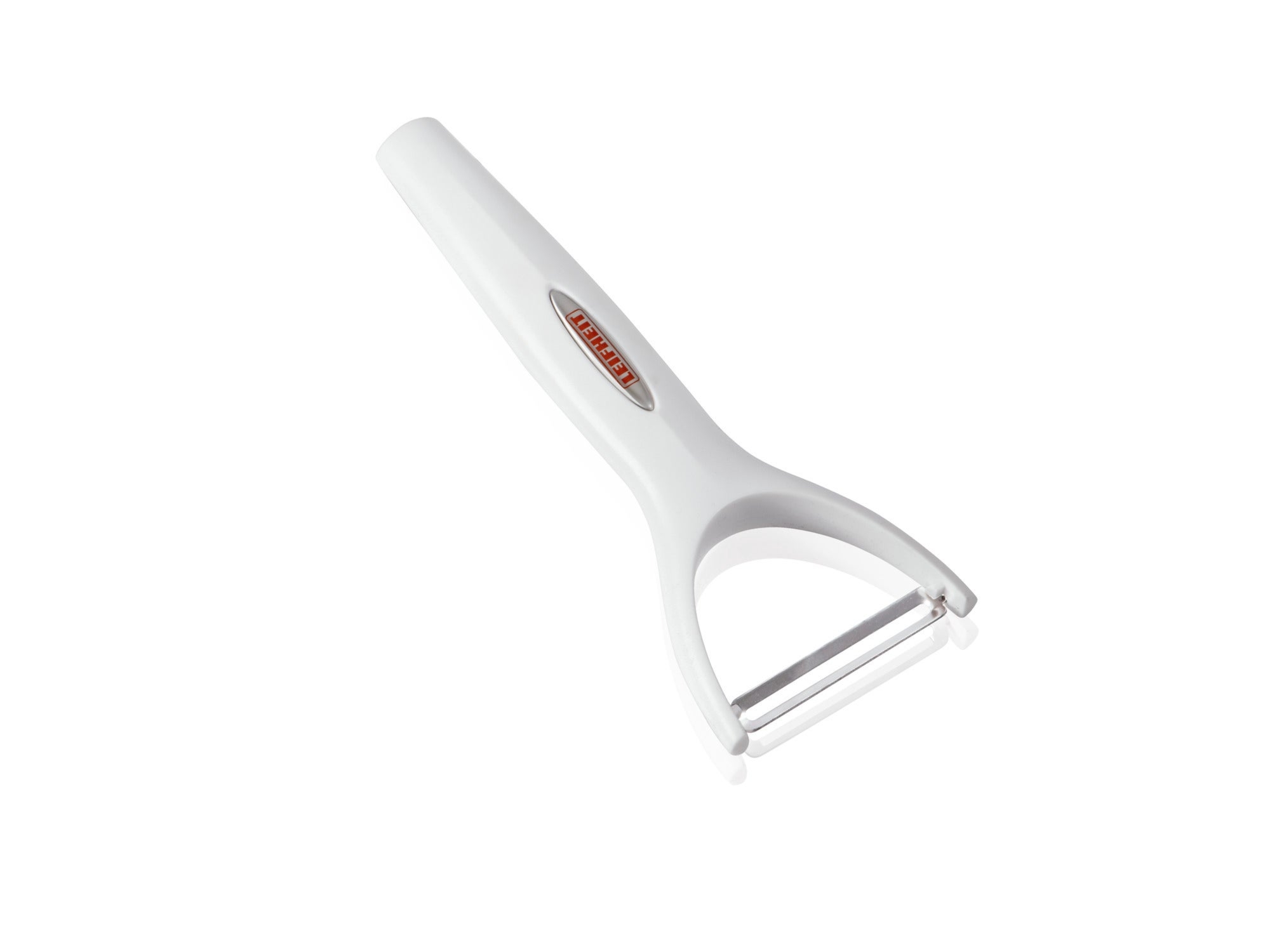 Pomocnik kuchenny marki Leifheit, z wygodną rączką. Biały plastik zapewnia stabilność, czystość i higienę. Precyzyjne ostrze umożliwia ekonomiczne obieranie. Z praktycznym otworem do wieszania na dostępnym oddzielnie wieszaku.