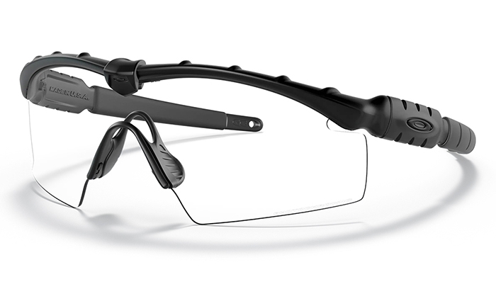 Okulary balistyczne SI M Frame 2.0 Industrial posiadające poliwęglanowy wizjer z materiału Plutonite cechującego się technologią Oakley High Definition Optics wyróżniającą się równomierną jakością materiału na całym wizjerze, z geometrią Polaric Ellipsoid.