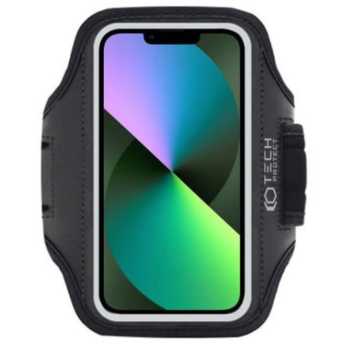 Opaska na ramię Tech Protect M2 Universal Sport Armband Dla urządzeń o wysokości do 16 cm oraz szerokości do 7,5 cm    Sportowa opaska na ramię Opaska na ramię marki Tech Protect z serii M2 Universal Sport Armband pozwala na bezproblemową obsługę smartfona podczas biegu czy jazdy na rowerze. Wymiary okienka:  151 x 78 mm Kolor producenta: Black    Komfort Naramienne etui zostało wykonane z wysokiej jakości materiałów odpornych na wilgoć i pot. Opaska posiada regulowany pasek mocowany na rzep, który pozwoli dopasować długość do każdego ramienia.    Niezwykła funkcjonalność Wbudowana powłoka zabezpieczy ekran Twojego urządzenia oraz pozwoli na bezproblemowe korzystanie ze smartfona. Pokrowiec posiada dedykowane miejsce na słuchawki oraz dwie funkcjonalne kieszonki - na kluczyk od frontu oraz na kartę lub dokumenty od wewnętrznej strony.