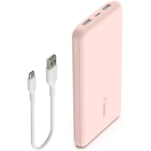 ℹ️ Produkt pochodzi z outletu!Na aukcji kupujesz produkt, który nie kwalifikuje się do sprzedaży jako pełnowartościowy z powodu uszkodzonego lub rozpakowanego opakowania, dlatego oferujemy go w obniżonej cenie!Każdy produkt jest sprawdzony i w pełni sprawny, posiada pełną gwarancję producenta oraz wsparcie techniczne sklepu.Belkin Boost Charge Power Bank 10K USB-C Cable 10000 mAh 15W Uniwersalny / 1x USB-C / 2x USB-A Dodatkowa moc 10'000 mAh Uniwersalna i kompaktowa bateria zewnętrzna o pojemności 10000mAh firmy Belkin z dołączonym kablem USB-C/USB-A, przeznaczona dla większości smartfonów, tabletów, smartwatchy, smartbandów, itp. Dzięki dwóm portom USB-A i jednemu portowi USB-C oraz maksymalnej mocy do 15W świetnie nadaje się do ładowania/podtrzymywania pracy urządzeń mobilnych. Długość kabla: 15 cm Kolor producenta: Rose Gold (różowozłoty) Uniwersalny Power Bank - max 15W Power Bank posiada wejście/wyjście USB-C oraz dwa wyjścia USB-A, których moc ładowania rozkłada się następująco: Wejście/wyjście: USB-C: 5V / 3A / 15W max - do ładowania baterii potrzeba ładowarki o mocy minimum 18W Wyjścia: USB-A (1): 5V / 2.4A / 12W max - podczas obciążania tylko jednego z nich USB-A (2): 5V / 2.4A / 12W max - podczas obciążania tylko jednego z nich Power Bank pozwala na ładowanie 2 lub 3 urządzeń jednocześnie dzieląc optymalnie łączną moc 15W na używane porty. Dzięki wejściu USB-C szybko i wygodnie naładujesz samego Power Banka, a wbudowany wskaźnik diodowy LED na bieżąco informuje o stanie jego naładowania. W zestawie znajduje się kabel USB-A/USB-C 15cm. Smukły i kompaktowy Eleganckie wykończenie sprawia, że całość wygląda smukło i stylowo, a jego niewielkie rozmiary w połączeniu z opływowym kształtem oferują jednocześnie wygodę w jego transporcie, dzięki czemu z łatwością zmieścisz go do torby czy plecaka. Wymiary: 68.33 mm 131.83 mm 15.75 mm Waga: 222g Bezpieczeństwo użytkowania Power Bank posiada czujniki monitorujące, zabezpieczające Twoje urządzenie przed skutkami przegrzania, przepięć lub nieprawidłowości w obwodzie. Dodatkowo Belkin zapewnia gwarancję bezpieczeństwa podłączonego sprzętu o wartości do 2,000 Euro. Najważniejsze cechy produktu Możliwość ładowania dwóch lub trzech urządzeń jednocześnie Wskaźnik diodowy LED Kabel USB-A/USB-C 15cm Power Bank nie posiada ładowarki w zestawie - do ładowania power banka najlepiej użyć ładowarki z USB-C PD o mocy minimum 18W Nie obsługuje ładowania w przelocie