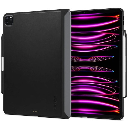 ℹ️ Produkt pochodzi z outletu!Na aukcji kupujesz produkt, który nie kwalifikuje się do sprzedaży jako pełnowartościowy z powodu uszkodzonego lub rozpakowanego opakowania, dlatego oferujemy go w obniżonej cenie!Każdy produkt jest sprawdzony i w pełni sprawny, posiada pełną gwarancję producenta oraz wsparcie techniczne sklepu.Etui Spigen Thin Fit Pro Apple iPad Pro 12.9" 2022 / 2021(A2378, A2461, A2379, A2462, A2436, A2764, A2437, A2766)   Poliwęglanowa konstrukcja Oryginalne etui typu plecki od marki Spigen z serii Thin Fit Pro to jeden z cieńszych i lekkich pokrowców tej firmy, zaprojektowany tak, aby nie dodawał zbędnej objętości urządzeniu. Obudowa wykonana została z poliwęglanu wykończonego eko-skórą "Premium Vegan Velo Leather", dzięki czemu mimo smukłej budowy nadal zapewnia skuteczną ochronę przed zarysowaniami i zabrudzeniami w codziennym użytkowaniu, a do tego świetnie się prezentuje. Ergonomiczna konstrukcja sprawia, że całość świetnie leży w dłoni oferując wygodny i pewny chwyt. To świetny cover dla tych, którzy cenią sobie minimalistyczny i ascetyczny design. Cechą wyróżniającą to etui jest jego specjalnie zaprojektowana budowa z odpowiednimi wycięciami i zintegrowanymi magnesami, która zapewnia zgodność współpracy z podanymi poniżej oficjalnymi pokrowcami i klawiaturami typu Folio od Apple: Kompatybilne z oficjalnym pokrowcami Apple: Smart Folio Kompatybilne z oficjalnymi klawiaturami Apple: Smart Keyboard Folio oraz Magic Keyboard Folio Posiada wbudowany slot do przechowywania rysika Apple - kompatybilny z bezprzewodowym ładowaniem dla Apple Pencil 2nd Gen. Kolor producenta: Black *Przedmiotem sprzedaży jest samo etui, pozostałe akcesoria widoczne na zdjęciach służą jedynie przedstawieniu jego funkcjonalności.   Wykończenie z eko-skóry Minimalistyczny design o gustownej powierzchni wykończonej eko-skórą "Premium Vegan Velo Leather" z pewnością zadowoli wszystkich tych, którzy wolą proste, ascetyczne covery od krzykliwych futerałów. To klasyczna obudowa, która doskonale zachowuje oryginalne kształty tabletu, świetnie się z nim komponując.     Kompatybilne z klawiaturami Folio od Apple Etui Thin Fit Pro pozwoli zachować ochronę Twojego tabletu wspierając przy tym jego wielozadaniowość. Dzięki przemyślanej budowie z odpowiednimi wycięciami oraz wbudowanymi magnesami możesz używać go samodzielnie lub razem z oficjalnym pokrowcem Apple Smart Folio, albo z oficjalną klawiaturą Apple Smart Keyboard Folio lub Apple Magic Keyboard Folio. Będzie to doskonały wybór dla użytkowników powyższych akcesoriów, gdyż w razie potrzeby odpięcia od nich tabletu nadal będziesz posiadać warstwę ochronną na swoim urządzeniu. Ciesz się elastycznością użytkowania z zachowaniem codziennej ochrony.     Lekka i smukła ochrona To wyjątkowo lekkie i smukłe etui, które nie pogrubia znacznie urządzenia, zapewniając mu codzienną ochronę przed zarysowaniami. Częściowo chroni tył i boki tabletu, a lekko wystające ranty chronią sekcję aparatów i ekran przed zarysowaniami na płaskich powierzchniach. Dzięki temu Twój wyświetlacz i obiektywy będą całkowicie bezpieczne podczas odkładania urządzenia na blat biurka.     Swobodna obsługa tabletu Pokrowiec zapewnia swobodny dostęp do wszystkich interfejsów urządzenia, dzięki dopasowanym osłonom na przyciski oraz wycięciom na porty. Całość jest niezwykle funkcjonalna i wygodna w użytkowaniu i świetnie trzyma się w dłoni.     Uchwyt na rysik Dodatkowo etui posiada specjalnie zaprojektowany slot do przechowywania rysika Apple, w pełni zachowujący jego funkcjonalność. Etui kompatybilne z bezprzewodowym ładowaniem dla Apple Pencil 2nd Gen.