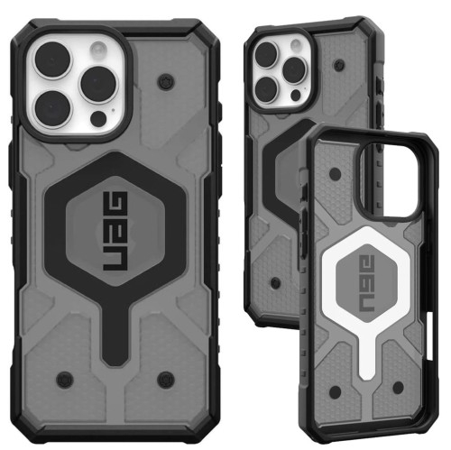 ℹ️ Produkt pochodzi z outletu!Na aukcji kupujesz produkt, który nie kwalifikuje się do sprzedaży jako pełnowartościowy z powodu uszkodzonego lub rozpakowanego opakowania, dlatego oferujemy go w obniżonej cenie!Każdy produkt jest sprawdzony i w pełni sprawny, posiada pełną gwarancję producenta oraz wsparcie techniczne sklepu.Etui Urban Armor Gear Pathfinder Clear MagSafe Apple iPhone 16 Pro Max   Pokrowiec od obieżyświatów dla obieżyświatów! Hej! Poszukiwaczu przygód! Szukasz niekonwencjonalnego etui chroniącego Twój smartfon podczas Twoim wojaży? Etui od marki Urban Armor Gear z serii Pathfinder Clear MagSafe sprawdzi się doskonale! Wykonane z połączenia wytrzymałych materiałów - TPU oraz miękkiego poliwęglanu o strukturze plastra miodu. Dwuczęściowa konstrukcja składa się z ramki i plecków, wspierając przy tym ładowanie bezprzewodowe i technologię MagSafe. *Przedmiotem sprzedaży jest samo etui, pozostałe akcesoria widoczne na zdjęciach służą jedynie przedstawieniu jego funkcjonalności. Kolor producenta: Ash (przydymiony (półprzezroczysty) z czarną ramką) Etui kompatybilne ze szkłami o wymiarach mniejszych niż (długość x szerokość): 15,98 x 7,44 cm   Łatwy dostęp do portów i przycisków Zapewniają swobodny dostęp do wszystkich interfejsów. Niezwykle funkcjonalne i wygodne w użytkowaniu. Posiada precyzyjne wycięcia i responsywne zintegrowane przyciski - chronią przed kurzem i pyłem i wyglądają przy tym dobrze!   Pancerne i wytrzymałe Etui spełnia wymogi standardu odporności Military Grade. Wzór heksagonów umieszczony od wewnętrznej strony służą dodatkowej ochronie w razie upadku. Lekko wystające krawędzie chronią kamerę i ekran przed zarysowaniami na płaskich powierzchniach.   Kompozytowa konstrukcja Zapewnia skuteczną ochronę przy minimalnych gabarytach oraz wadze, dzięki czemu jest lekkie i smukłe. Posiada specjalną powłokę odporną na ścieranie i odciski palców. Nie pogrubia znacząco urządzenia. Jest maksymalnie cienkie dla tego typu konstrukcji, dzięki czemu zapewnia solidną ochronę, praktyczną lekkość i smukły wygląd.   Kompatybilność z MagSafe UAG Pathfinder Clear posiada specjalny pierścień magnetyczny, który pozwala na kompatybilność ze wszelkimi akcesoriami z serii MagSafe. Dzięki temu pozwala ona zachować pełną funkcjonalność smartfona w zakresie ładowania bezprzewodowego, gdyż z wykorzystaniem magnetycznego mocowania Twoja ładowarka indukcyjna z MagSafe zawsze będzie przylegać do telefonu w prawidłowym miejscu