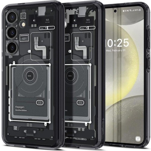 ℹ️ Produkt pochodzi z outletu!Na aukcji kupujesz produkt, który nie kwalifikuje się do sprzedaży jako pełnowartościowy z powodu uszkodzonego lub rozpakowanego opakowania, dlatego oferujemy go w obniżonej cenie!Każdy produkt jest sprawdzony i w pełni sprawny, posiada pełną gwarancję producenta oraz wsparcie techniczne sklepu.Etui Spigen Ultra HybridSamsung Galaxy S24 Hybrydowa konstrukcjaHybrydowe etui od marki Spigen z serii Ultra Hybrid to ceniony i chętnie wybierany wariant przez wielu użytkowników. Cover wykonany został z połączenia termoplastycznej poliuretanowej ramki oraz wytrzymałej poliwęglanowej tylnej osłony. Jednoczęściowa konstrukcja typu "plecki" zapewnia doskonałą ochronę w codziennym użytkowaniu. Ergonomiczna budowa sprawia, że całość świetnie leży w dłoni oferując wygodny i pewny chwyt. Smukły design prezentuje oryginalny wygląd Twojego urządzenia.*Przedmiotem sprzedaży jest samo etui, pozostałe akcesoria widoczne na zdjęciach służą jedynie przedstawieniu jego funkcjonalności.Kolor producenta: Zero One (kolor etui: szary z nadrukowanym motywem odwzorowującym wewnętrzny układ komponentów smartfona / kolor ramki: przydymiony szary)Etui kompatybilne ze szkłami o wymiarach mniejszych niż (długość x szerokość): 14,38 x 6,76 cm Lekka i smukła ochronaTo wyjątkowo lekkie i smukłe etui, które nie pogrubia znacznie urządzenia, zapewniając mu codzienną ochronę przed zarysowaniami. Skutecznie chroni tył i boki smartfona, a lekko wystające ranty chronią sekcję aparatów i ekran przed zarysowaniami na płaskich powierzchniach. Dzięki temu Twój wyświetlacz będzie całkowicie bezpieczny podczas odkładania telefonu ekranem w dół, zatem korzystaj swobodnie z gestów wyciszania, oraz nie martw się o swoje obiektywy odkładając telefon na blat biurka. Edycja Zero OneStylowy design charakteryzuje się nadrukowanym motywem odwzorowującym wewnętrzny układ komponentów smartfona, dzięki czemu możesz imitować wygląd wnętrza telefonu bez ingerencji w jego spójną budowę. To świetna opcja dla tych, których fascynuje techniczna strona ich urządzenia. Osłony na przyciskiPrecyzyjne wycięcia zapewniają swobodny dostęp do wszystkich interfejsów smartfona, dzięki czemu całość jest niezwykle funkcjonalna i wygodna w użytkowaniu. Cover posiada także zintegrowane osłony na przyciski, które są responsywne i zachowują dobrze wyczuwalne kliknięcie. Wzmocnione narożnikiEtui zapewnia solidną ochronę przy minimalnych gabarytach oraz wadze podczas upadków. Dzięki technologii Air Cushion®, czyli poduszek powietrznych umiejscowionych w narożnikach, skutecznie amortyzuje wstrząsy od upadków, spełniając wymogi standardu odporności Mil-Grade. Dobrze trzyma się w dłoniDzięki ramce z TPU futerał wygodnie i pewnie leży w dłoni, a do tego łatwo się zakłada jak i zdejmuje. Zastosowany materiał nie zakłóca ładowania bezprzewodowego - dotyczy modeli telefonów wyposażonych w tą technologię.