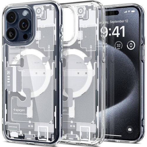 ℹ️ Produkt pochodzi z outletu!Na aukcji kupujesz produkt, który nie kwalifikuje się do sprzedaży jako pełnowartościowy z powodu uszkodzonego lub rozpakowanego opakowania, dlatego oferujemy go w obniżonej cenie!Każdy produkt jest sprawdzony i w pełni sprawny, posiada pełną gwarancję producenta oraz wsparcie techniczne sklepu.Etui Spigen Ultra Hybrid Mag Apple iPhone 15 Pro Hybrydowa konstrukcja z MagSafe Hybrydowe etui od marki Spigen z serii Ultra Hybrid Mag to pokrowiec, który dzięki wbudowanemu pierścieniowi magnetycznemu jest kompatybilny z akcesoriami z serii Apple MagSafe. Cover wykonany został z połączenia termoplastycznej poliuretanowej ramki oraz wytrzymałej poliwęglanowej tylnej osłony. Jednoczęściowa konstrukcja typu "plecki" zapewnia doskonałą ochronę w codziennym użytkowaniu. Ergonomiczna budowa sprawia, że całość świetnie leży w dłoni oferując wygodny i pewny chwyt. Smukły design prezentuje oryginalny wygląd Twojego urządzenia. *Przedmiotem sprzedaży jest samo etui, pozostałe akcesoria widoczne na zdjęciach służą jedynie przedstawieniu jego funkcjonalności. Kolor producenta: Zero One White (biało-szare z nadrukowanym motywem odwzorowującym wewnętrzny układ komponentów smartfona) Etui kompatybilne ze szkłami o wymiarach mniejszych niż (długość x szerokość): 14,30 x 6,69 cm Lekka i smukła ochrona To wyjątkowo lekkie i smukłe etui, które nie pogrubia znacznie urządzenia, zapewniając mu codzienną ochronę przed zarysowaniami. Skutecznie chroni tył i boki smartfona, a lekko wystające ranty chronią sekcję aparatów i ekran przed zarysowaniami na płaskich powierzchniach. Dzięki temu Twój wyświetlacz będzie całkowicie bezpieczny podczas odkładania telefonu ekranem w dół, zatem korzystaj swobodnie z gestów wyciszania, oraz nie martw się o swoje obiektywy odkładając telefon na blat biurka. Edycja Zero One Stylowy design w tej wersji charakteryzuje się nadrukowanym motywem odwzorowującym wewnętrzny układ komponentów smartfona, dzięki czemu możesz imitować wygląd wnętrza telefonu bez ingerencji w jego spójną budowę. To świetna opcja dla tych, których fascynuje techniczna strona ich urządzenia. Kompatybilne z serią Apple MagSafe Wewnątrz etui znajduje się wbudowany pierścień magnetyczny zapewniający kompatybilność z akcesoriami z serii Apple MagSafe. Dzięki niemu nadal możesz korzystać z posiadanej ich gamy bez potrzeby zdejmowania pokrowca. Osłony na przyciski Precyzyjne wycięcia zapewniają swobodny dostęp do wszystkich interfejsów smartfona, dzięki czemu całość jest niezwykle funkcjonalna i wygodna w użytkowaniu. Cover posiada także zintegrowane osłony na przyciski, które są responsywne i zachowują dobrze wyczuwalne kliknięcie. Wzmocnione narożniki Etui zapewnia solidną ochronę przy minimalnych gabarytach oraz wadze podczas upadków. Dzięki technologii Air Cushion®, czyli poduszek powietrznych umiejscowionych w narożnikach, skutecznie amortyzuje wstrząsy od upadków, spełniając wymogi standardu odporności Mil-Grade. Dobrze trzyma się w dłoni Dzięki ramce z TPU futerał wygodnie i pewnie leży w dłoni, a do tego łatwo się zakłada jak i zdejmuje. Zastosowany materiał nie zakłóca ładowania bezprzewodowego - dotyczy modeli telefonów wyposażonych w tą technologię.