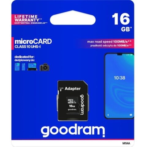 Karta pamięci 16GB microSDHC, Goodram M1AA UHS-I U1 C10 100MB/s + adapter Opinie
