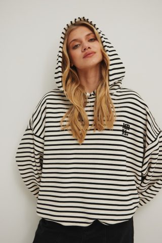 Bluza oversize , wykonana z dzianiny bez ocieplenia w paski beżowo czarne z haftem. Fason o luźnym kroju. Dół bluzy jak i rękawy zostały zakończone ściągaczem. Model z obniżoną linią ramion, oraz kapturem. Z przodu haft z logo MRSL w kolorze czarnym. Przeznaczona przede wszystkim dla wielbicielek wygody, które jednocześnie pragną podążać za najświeższymi trendami. […]