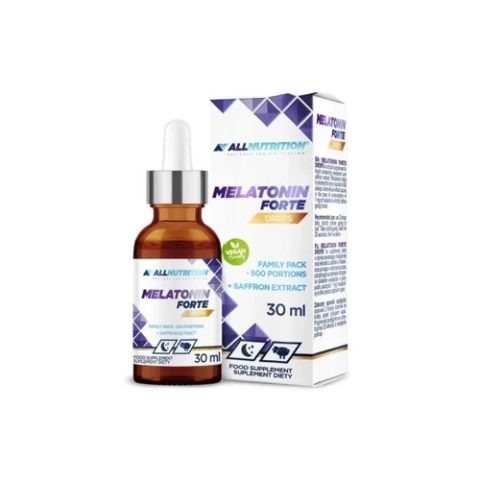 Suplement diety Allnutrition Melatonin Forte krople przeznaczony jest dla osób dorosłych. Pozwala uzupełnić codzienną dietę w melatoninę oraz ekstrakt z kwiatów szafranu. Preparat polecany jest jako wsparcie w przypadku problemów z zasypianiem.