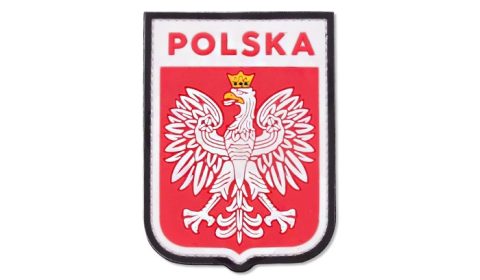 Naszywka Polska herb firmy 101 Inc. - Wykonana w technologii 3D - Mocowana za pomocą rzepu - Wymiary: 73 x 100 mm