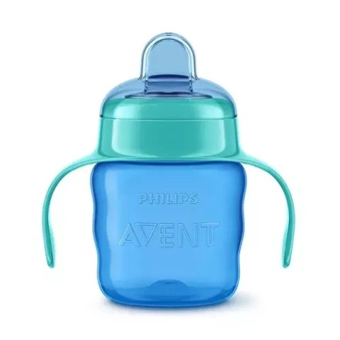 Avent Kubek z ustnikiem 6m+ o pojemności 200ml w kolorze niebieskim. Jest on polecany do nauki samodzielnego picia. Kubek ma jednoczęściowy, silikonowy ustnik, który należy ścisnąć, aby napój wypłynął. Wszystkie jego części można myć w zmywarce.