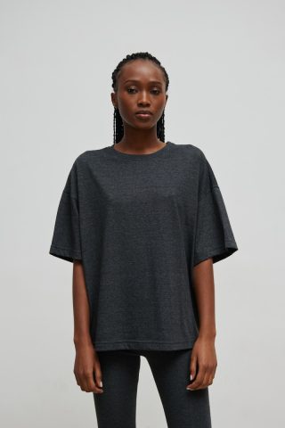 Klasyczny tshirt w kolorze grafitowym z efektem melanżu. Fason o prostym, pudełkowym kroju ze znacznie obniżoną linią ramion. Rękaw szeroki, przedłużony. Dekolt niewielki, okrągły . Luźna, inspirowana męską garderobą koszulka, która pasuje niemalże do każdego typu sylwetki - świetnie tuszuje wszelkie niedoskonałości i daje możliwość noszenia zarówno w luźnej formie, jak i delikatnie wpuszczonej do […]