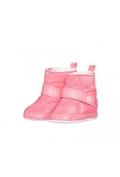 buciki dla dziewczynki cholewka - 90% poliester, 10% poliuretan podeszwa - 100% bawełna podszewka - 100% poliester wkładka - 100% poliester kolor różowy zapięcie na rzepy na podeszwie antypoślizgowe elementy