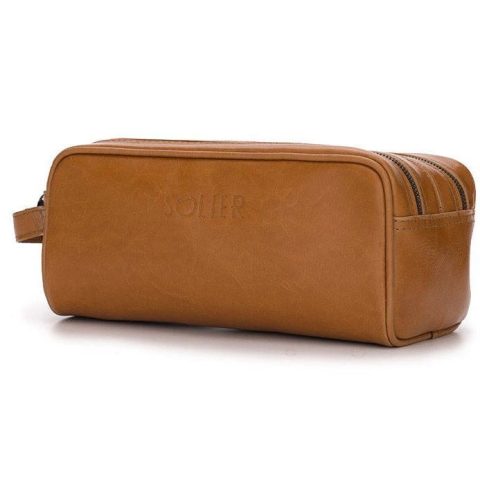 Elegancka skórzana kosmetyczka męska Solier camel Opinie