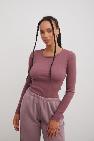 Dopasowany top z prążkowanej dzianiny w kolorze ROSE BROWN - MOODY-L Marsala Opinie