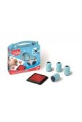 Stemple pokryte miłą w dotyku powłoką antypoślizgową.Ślimak, kot, gwiazdka i piórko - co je łączy? - autor dzieła:).Zestaw zawiera:4 ergonomiczne stemple z różnymi wzorami (pióro, gwiazda, kot i slimak), 1 poduszka z czerwonym tuszem.Wiek: +2