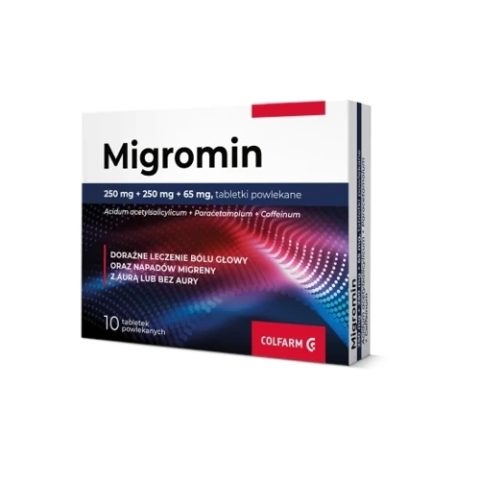 Wskazaniem do stosowania produktu leczniczego Migromin 250mg+250mg+65mg jest doraźne leczenie bólu głowy i napadów migreny z aurą lub bez aury – objawiających się np. bólem głowy, nudnościami, nadwrażliwość na światło. Lek dla osób dorosłych.