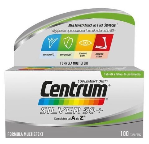 Preparat multiwitaminowy dla osób po 50. roku życia. W tym wieku zapotrzebowanie organizmu na minerały i witaminy nieco się zmienia, dlatego zaleca się stosować suplement diety Centrum A-Z Silver 50+ dostosowany dla potrzeb starszych osób.