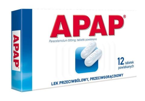Apap to lek zawierający 500mg Paracetamolu - stosowanego w stanach bólowych różnego pochodzenia oraz w przebiegu grypy i przeziębienia z występującą gorączką. Lek wskazany zwłaszcza w: bólach głowy, mięśni, zębów, bólach menstruacyjnych.