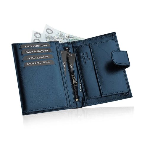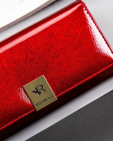 Uszyty z wysokogatunkowej lakierowanej skóry naturalnej. Portfel w ponadczasowym stylu. Model w całości lakierowany. Pod warstwą lakieru klapkę zdobi prążkowana faktura. Portfel posiada dużo praktycznych przegródek i kieszonek. Mieści dowód rejestracyjny.