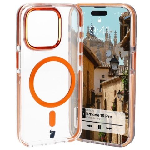 Etui z pierścieniem magnetycznym Bizon Case Marco do iPhone 15 Pro, przezroczyste z pomarańczową ramką Opinie