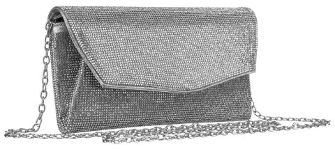 Wyjątkowo elegancki design, zdobiony lśniącymi cyrkoniami. Torebka wykonana jest z wysokiej jakości syntetycznego materiału, który gwarantuje trwałość oraz estetyczny wygląd na długie lata. Torebka na srebrnym łańcuszku.