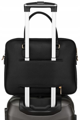 Elegancka torba na laptopa ze skóry ekologicznej o groszkowej fakturze. Torba mieści format A4. Wyposażona w doczepiany pasek i uchwyt na walizkę.